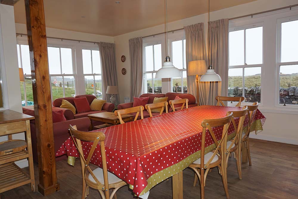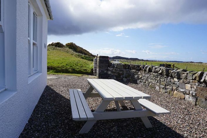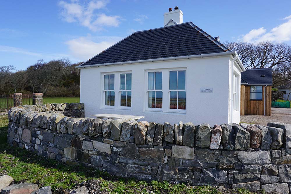 Traigh Beach House is set immediately adjacent to glorious white sandy beaches and the challenging golf course of Traigh. This unique sleeps up to 6 guests enjoying extensive sea views with a large kitchen/dining room and sitting room with cosy log burner. Downstairs there is a spacious king bedroom with a luxurious ensuite with both bath and shower. The property also has a utility room for outdoor gear and an additional guest toilet. Upstairs there are two twin bedrooms with en-suite showers . There is an extensive outdoor area with a picnic bench and generous parking space for 3 cars.